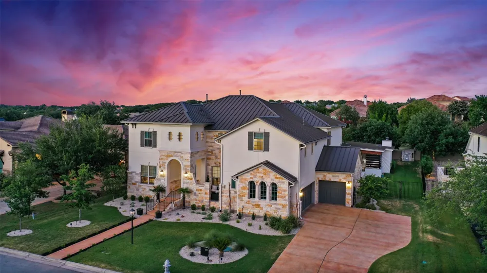 Welcome to 109 Bisset Court. This exquisite 5,282 SqFt residence located in the prestigious community of The Bluffs in Rough Hollow was built in 2019 by Westin Home. The gourmet kitchen is a Chef’s dream delight, showcasing an eight burner Wolf Stove, Sub-Zero refrigerator, high-end custom finishes, and a full wet bar. All 4 bedrooms have en suite bath and walk in closets. Located downstairs is a large, dedicated office and workspace. Upstairs boasts a generous media room, along with sizable living/playroom. The current owners have added $265,000 in upgrades including partially enclosing the upstairs living room, replacing all drapes with custom wood shutters, added accent tiles on stairs and showers, tankless water heater, and opening up the living room by installing new, larger sliding glass doors to offer stunning views of the pool. Enjoy relaxing in this backyard private oasis, complete with custom-built pool and spa, outdoor kitchen and dining area, plus a cozy cabana with outdoor fireplace. Rough Hollow offers resort-style living with the Canyon Grille Restaurant situated next to the Marina and Yacht Club on Lake Travis just minutes away, plus many more amenities including tennis, basketball, bocce and pickle ball courts, playgrounds, pools, lazy river, pavilion, fitness center, and 22 miles of scenic hike and bike trails. Voted one of the best master planned communities!