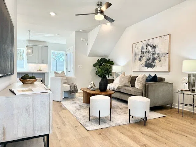 Ask about our preferred lender financing incentives. Discover modern living in East Austin with this stunning new David Weekley Home. Spread across two stories and offering 1,466 square feet, this residence features 3 bedrooms and 2.5 bathrooms, perfectly designed for comfort and convenience. Step inside to find an open floor plan that maximizes space and light, creating a welcoming environment for daily living and entertaining. The home is equipped with contemporary finishes, from the sleek kitchen with state-of-the-art appliances to the chic bathrooms adorned with premium fixtures. Located in a secure gated community, this home promises low-maintenance living, allowing you to enjoy your time exploring the vibrant surroundings. Just half a mile from the innovative Springdale General and the cozy Cafe Medici, you have everything you need at your doorstep. The proximity to major tech hubs is unbeatable, with Google only 2.5 miles away and Meta just 3 miles away. Outdoor lovers will appreciate being close to the scenic Lady Bird Lake, a mere 1.7 miles away, and the serene Mueller Lake Park, just 2 miles from home. Plus, the University of Texas is easily accessible, only 3.4 miles away, making this an ideal location for students and professionals alike. This home offers the perfect blend of modern design and prime location. Schedule a visit today to experience the best of East Austin living in a beautiful new home! Our EnergySaver™ Homes offer peace of mind knowing your new home in Austin is minimizing your environmental footprint while saving energy. A David Weekley EnergySaver home in Austin averages a 60 on the HERS Index. Square Footage is an estimate only; actual construction may vary.