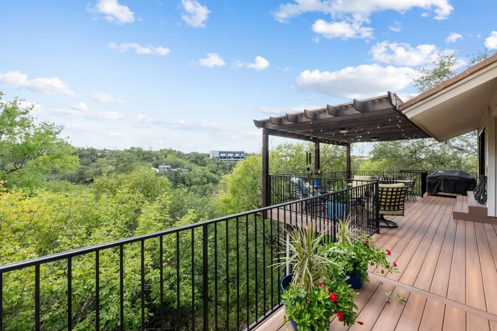 Located in the prestigious Northwest Hills/Westover Hills area, this home is situated on a quiet cul-de-sac with unobstructed views of Neely Canyon. Floor-to-ceiling windows and six sets of sliders maximize the views and indoor/outdoor living. Designed for high-end comfort, the interior features a modern layout with the primary suite, dedicated office, and laundry room conveniently located on the main floor. Solid Hickory wood flooring flows through a light-filled living space defined by floor-to-ceiling windows and a contemporary glass entry. The gourmet kitchen serves as the home’s centerpiece, anchored by a Thermador 6-burner gas range, heat- and stain-proof Soapstone countertops, a Fisher & Paykel high-efficiency double dishwasher, and a built-in beverage station with cocktail sink, icemaker, and beverage refrigerator. The oversized primary suite offers floor-to-ceiling slider access to the screened-in porch. The primary bath includes dual vanities, a soaker tub, an oversized shower, and elegant marble countertops and tile flooring. Outdoor living spaces provide a private retreat with panoramic views and access to nearby hiking trails. An extremely private back deck features low-maintenance Trek decking and dedicated gas plumbing for a grill. The screened-in porch is equipped with clear roll-down window coverings, creating a true three-season room. These features are complemented by 2023 low-maintenance landscaping and fresh 2025 exterior paint, providing exceptional curb appeal alongside the natural canyon backdrop. This home offers extensive behind-the-walls investments, including a 50-year transferable warranty on the Decra steel roof and dual high-efficiency HVAC systems. Energy efficiency is enhanced by double-pane Low-E glass on all south-facing windows, along with a whole-house water filtration and hot water recirculation system.